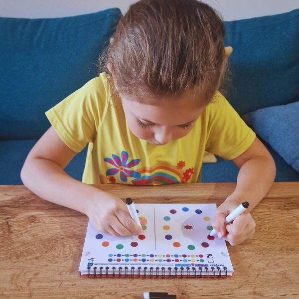 Gdy dziecko wykona zadanie, niech zetrze marker ze strony i spróbuje ponownie, tak długo aż będzie zadowolone z rezultatu. Możecie się nawet zmieniać z dzieckiem.