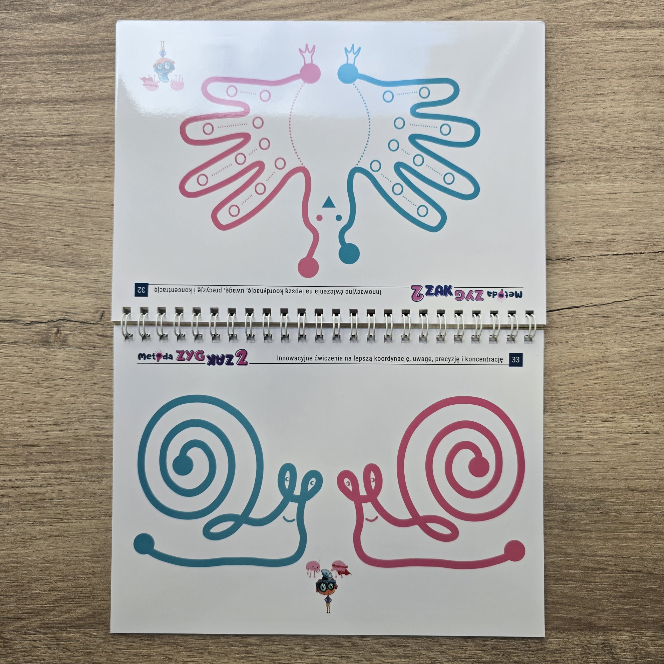 Innowacyjna książeczka „Metoda Zyg-Zak 2” pomaga dzieciom powyżej 3. roku życia ZNACZĄCO poprawić uwagę i koncentrację dzięki ćwiczeniom mózgowym, które jednocześnie angażują obie półkule mózgu.