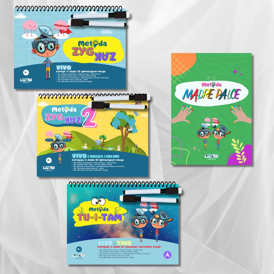 - Metoda Mądre palce – różnorodne ćwiczenia oburęczne do wielokrotnego użytku;