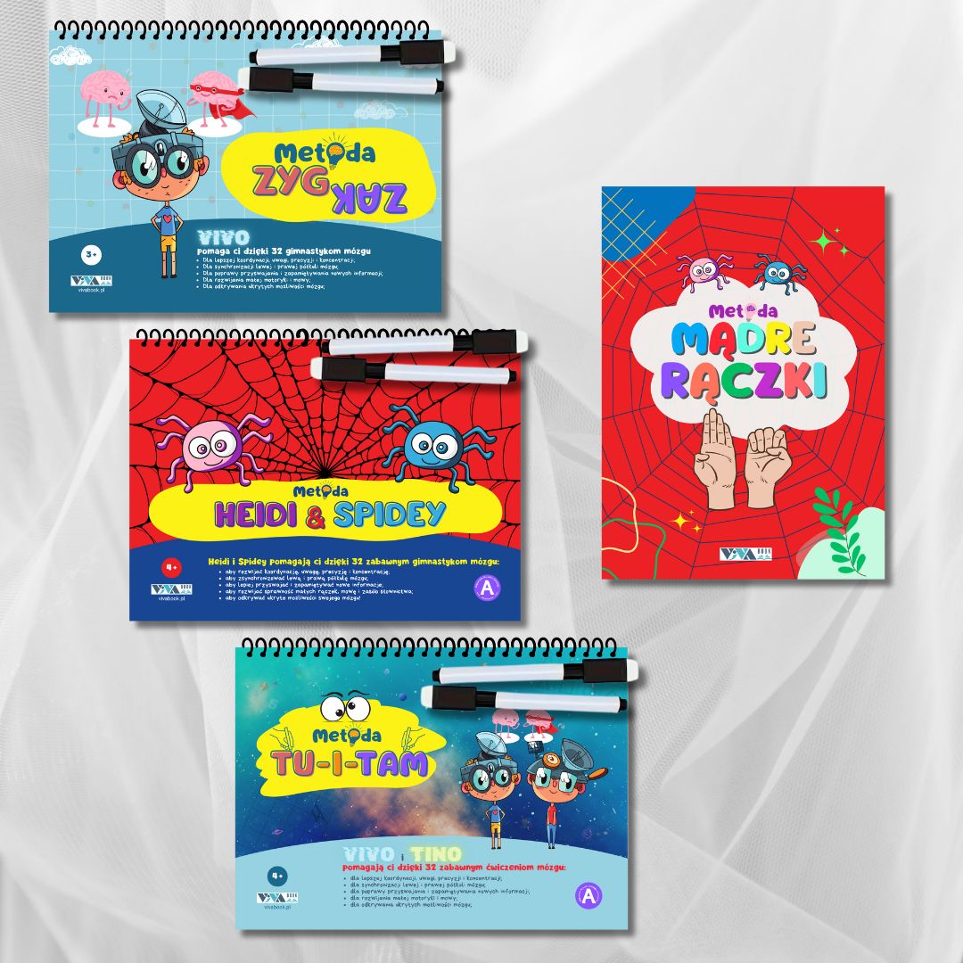 Zestaw 4 – Gimnastyka dla mózgu – Zyg-Zak | Tu-i-Tam | Heidi i Spidey | Mądre rączki