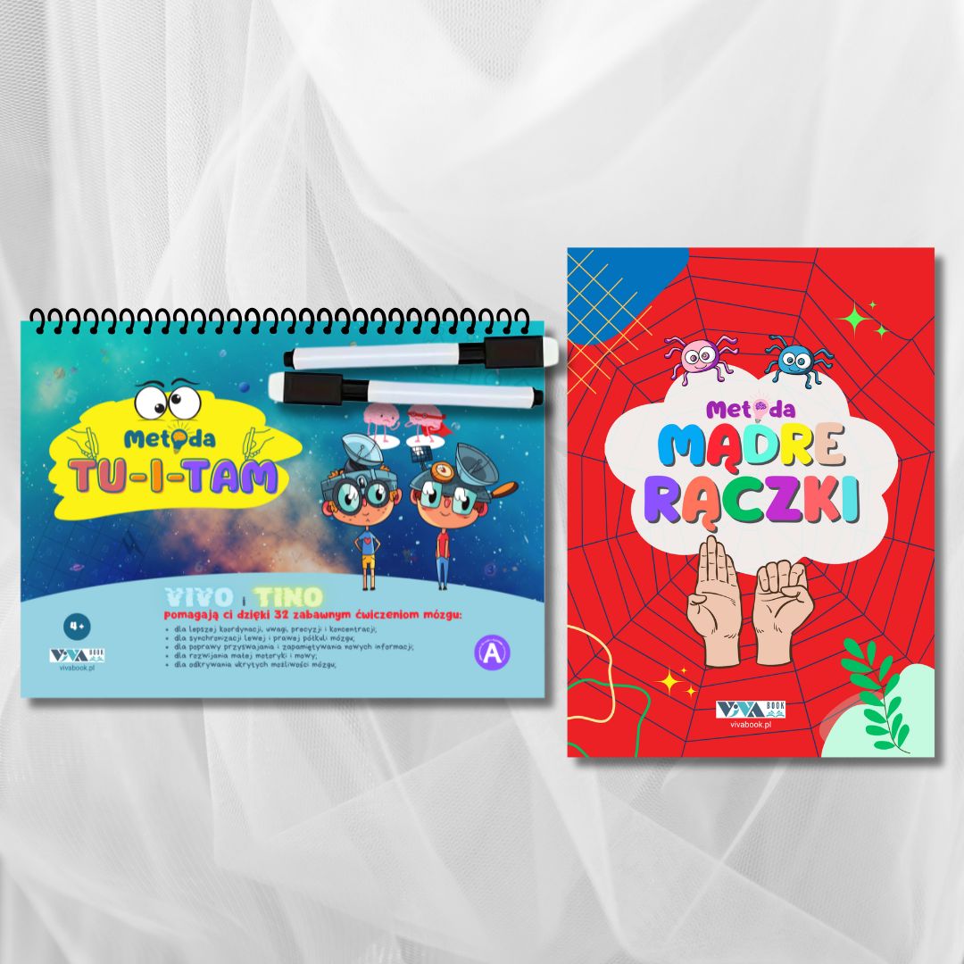 Zestaw „Metoda Tu-i-Tam” + „Metoda Mądre Rączki” – innowacyjne ćwiczenia dla treningu mózgu + zmazywalne markery