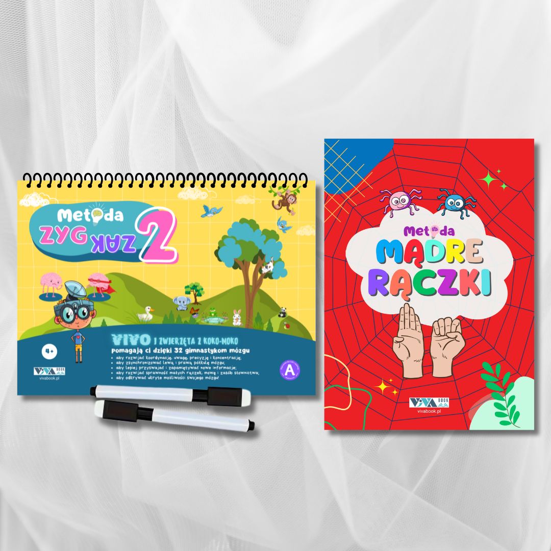 Zestaw „Metoda Zyg-Zak 2” + „Metoda Mądre Rączki” – innowacyjne ćwiczenia dla treningu mózgu + zmazywalne markery
