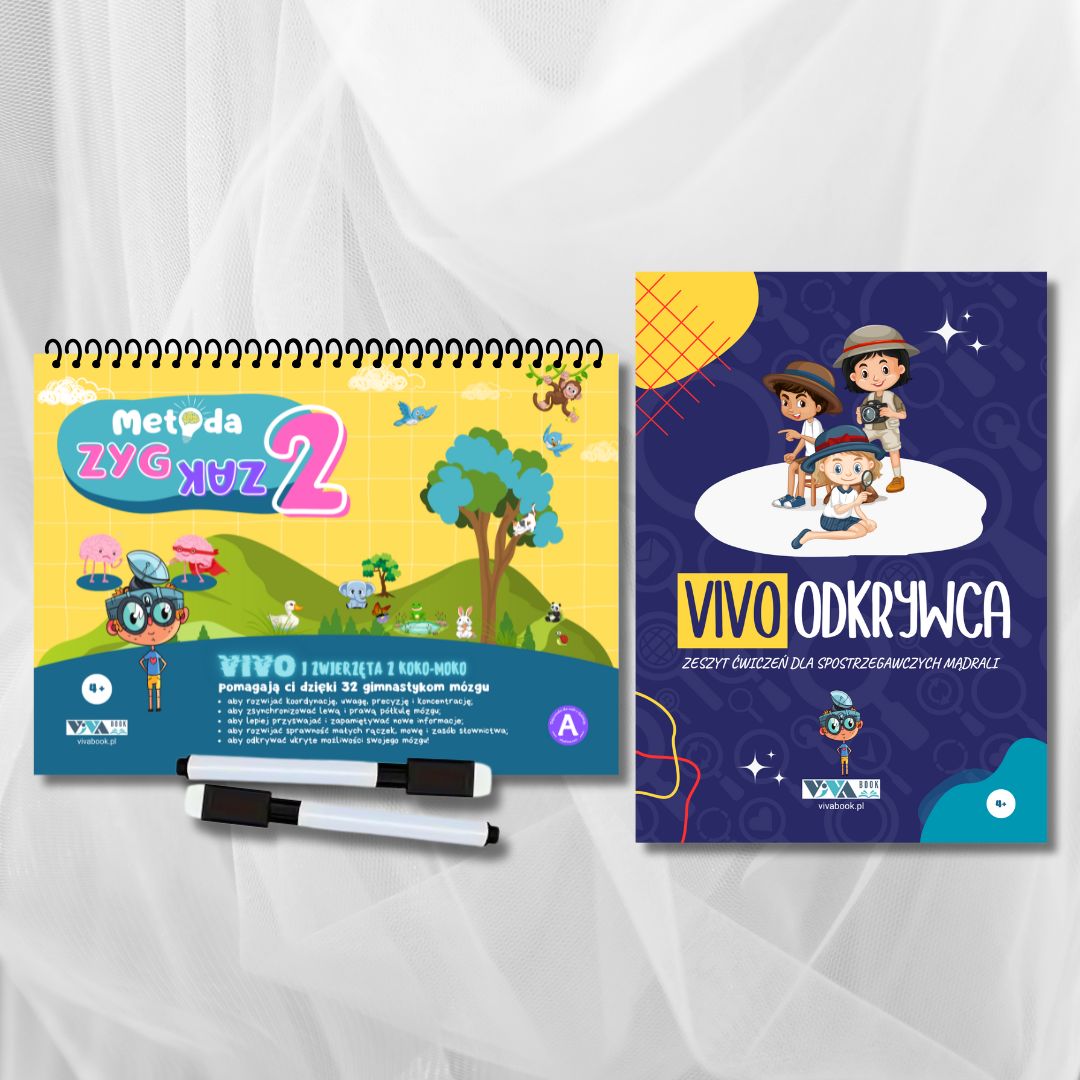 Zestaw „Metoda Zyg-Zak 2” + „VivoOdkrywca” – Innowacyjne ćwiczenia rozwijające uwagę, koncentrację i logiczne myślenie + 2 zmazywalne markery